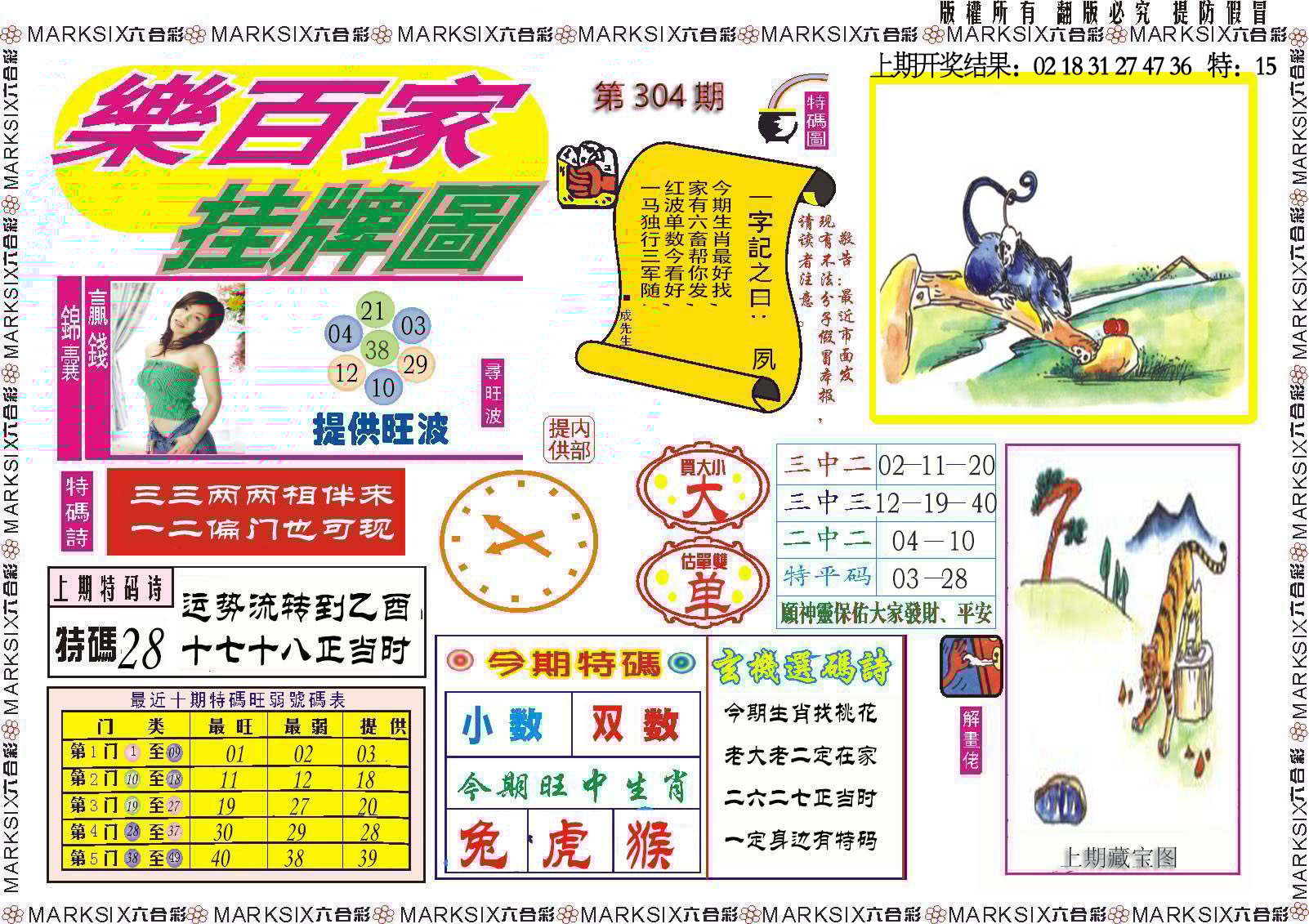 304期:★平特2尾★【38】开0个准